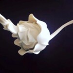 綿と出会って、35年が過ぎようとしています。ある日、“ふわっ”とした白いかたまりを手にしたとき、まるで、世界が透き通るような感覚に魅せられた私は、植物の種子である青梅綿で創作を始めました。現在は、蚕が生み出す真綿の生命力を活かしたような作品です。長い間、綿の可能性を探ってきました。その過程で、私の作品は少しずつ変わり、移ろい、新たな創作に向き合う日々が続いています。