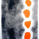 スペインで版画技法を習得し、プレスをする折版に砂をまき、刷るという工程の為、その都度砂が動き版画でありながら、オンリーワンという作品。近年伸びやかで軽やかさが生まれ、リズム感のある展開が楽しい。20点余。