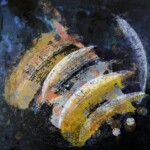 サイバーパンク[Cyberpunk]は、人体や生物を機械や工学的な改造によって広まる世界と思想を指しています。私は、サイバーパンクの考え方と版画の複数性を融合し、繰り返し行う版画の作業と同時に、自分が日常生活の中で感じ、さらに保存したかった景色、色彩あるいはものの一部を切り取って、作品の中に取り込もうとしています。多色な空模様、静止する波、変化する月、お花の中に秘めた季節の移り変わり…有機物の生命、無機物の機械、全ては人間とは違う時間軸で状態が変化しています。一つ一つは変化しながら、過去となりつつ、現代と関係し、さらに未来へと繋がるポイントともなっています。その過去と未来を連結するポイントを作品を介して、人々と共感できる作品の制作を行っています。 作品点数:25点余