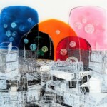 私は、このような考え方で作品の世界を広げながら、自分と作品、作品と観者の世界を耕しています。シルクスクリーンという版画の技法を用いて、機械や部品を繰り返し刷ることで、作品の画面上で構築しながら、全ては一つ、一つは全ての私なりの世界観を作り出しています。