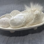 いろいろな自然素材を集めて型を取ったり、編んだり重ねたりしています。素材や技法を重ねて表現したいものに近づけて、まだ誰も見たことがない世界を創り出せたら嬉しいです。