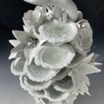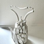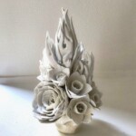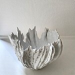 水は記憶を蓄えながらその姿を変えつつ循環し命を運び巡らせます。ひと碗の水を汲むとき私はこの水の分子達は何極回地球を巡ってどれほどの何ものかになってきたのだろう,と妖しくも尊い気持ちを覚えます。そんな水が変幻し廻る諸相を思いながら磁器土で様々な形を作りました。