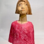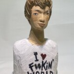 石井作品はクスノキをベースに彫り込んでいく。近年はとみに家族のポートレートが多いように見受けられる。