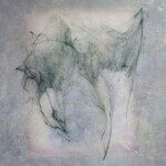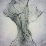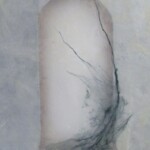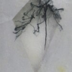 線は長年にわたり、綿による作品を手掛けている作家です。素材はシルクの綿。雲のような作品は最近色彩が入り、より絵画的に向いつつあるようです。今回蠟を加えてより実験的な作品を展開しています。