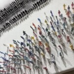 Summary 1/100サイズ(2cmほど)のプラスチック人形をキャンバスにたくさん立たせることで、 集合体の中で揺らぐ人間の行動心理を可視化、表現しました。 様々な要素を限界まで削ぎ落とし芸術の本質を求めるミニマリズムの構成により、人間 社会と芸術における本質的な思考を巡らせる。