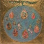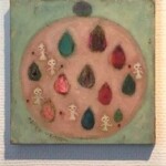 2作家共彫刻科出身というのが興味深い。上西はパステルで非常にカラフルな円を重ねる作風